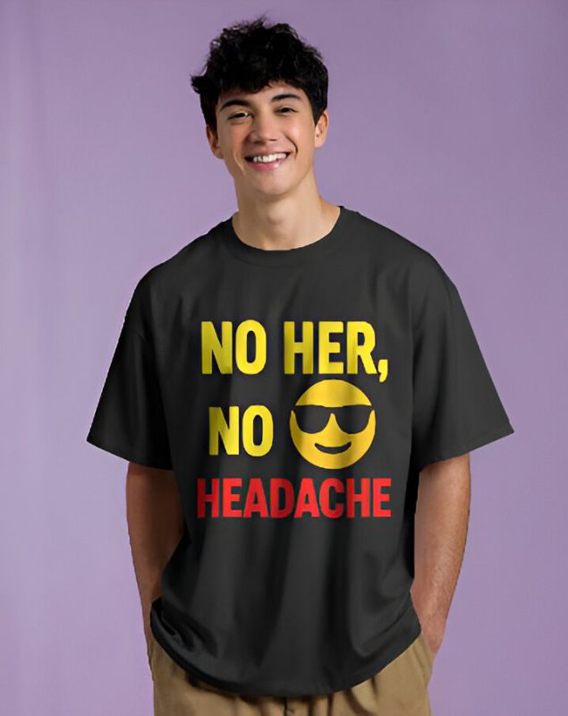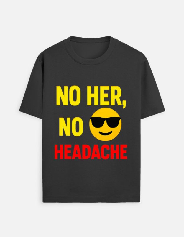 No Her No Headache – Funny Bold Graphic Unisex Crew T-Shirt